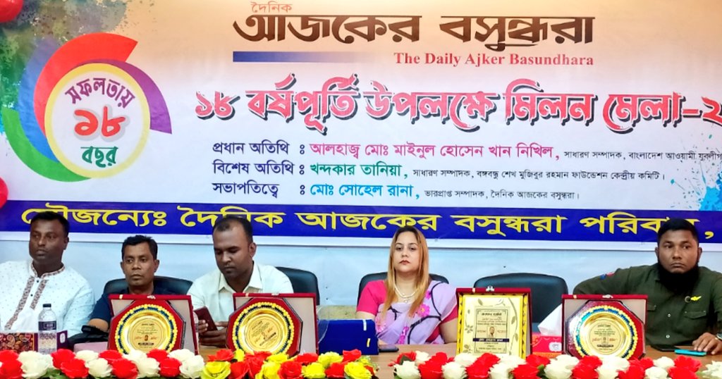 ঢাকা থেকে প্রকাশিত দৈনিক আজকের বসুন্ধরা পত্রিকার ১৮তম বর্ষপূর্তি উদযাপন করা হয়েছে। আজকের বসুন্ধরা পরিবারের আয়োজনে শুক্রবার (১৫ই সেপ্টেম্বর) দিনভর নানা আয়োজনের মধ্য দিয়ে রাজধানী ঢাকার পুরাতন পল্টন এলাকায় পল্টন টাওয়ারের ৪র্থ তলায় ইকোনমিক রিপোর্টার্স ফোরাম অডিটোরিয়ামে পত্রিকাটির ১৮তম বর্ষপূর্তি উদযাপন করা হয়। অনুষ্ঠানের শুরুতে পবিত্র কুরআন থেকে তেলাওয়াত ও তরজমা করেন আজকের বসুন্ধরা পত্রিকার কক্সবাজার জেলার বিশেষ প্রতিনিধি আশেক উল্লাহ ফারুকী।