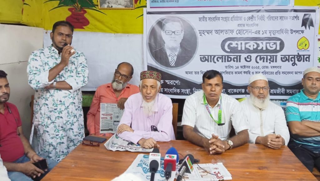 নিজস্ব প্রতিবেদক: নিজ হাতে শিক্ষা দেওয়া হাজারো অনুজ সাংবাদিকের কর্মযজ্ঞের মাঝেই বেঁচে আছেন কিংবদন্তি সাংবাদিক মুহম্মদ আলতাফ হোসেন। তিনি আজ হাজার হাজার মফস্বল সাংবাদিকের পরিচয় পতাকা। মুহম্মদ আলতাফ হোসেনের দিক্ষা বুকে নিয়ে সারাদেশে ছড়িয়ে ছিটিয়ে সাংবাদিকতা করছেন অসংখ্য সংবাদকর্মী। মঙ্গলবার (১৪ অক্টোবর) বিকেলে আলতাফ হোসেনের জন্মভিটা বাকেরগঞ্জে প্রথম মৃত্যুবার্ষিকীতে স্মরণ সভায় বক্তব্যে এসব কথা বলেন জাতীয় সাংবাদিক সংস্থার কেন্দ্রীয় যুগ্ম মহাসচিব  ও দৈনিক বর্তমান’র ব্যুরো চিফ মোঃ মামুন-অর-রশিদ। বাকেরগঞ্জ উপজেলার নিয়ামতি উপ-শাখার উদ্যোগে এ অনুষ্ঠানটি নিয়ামতি ইউনিয়নে অনুষ্ঠিত হয়।