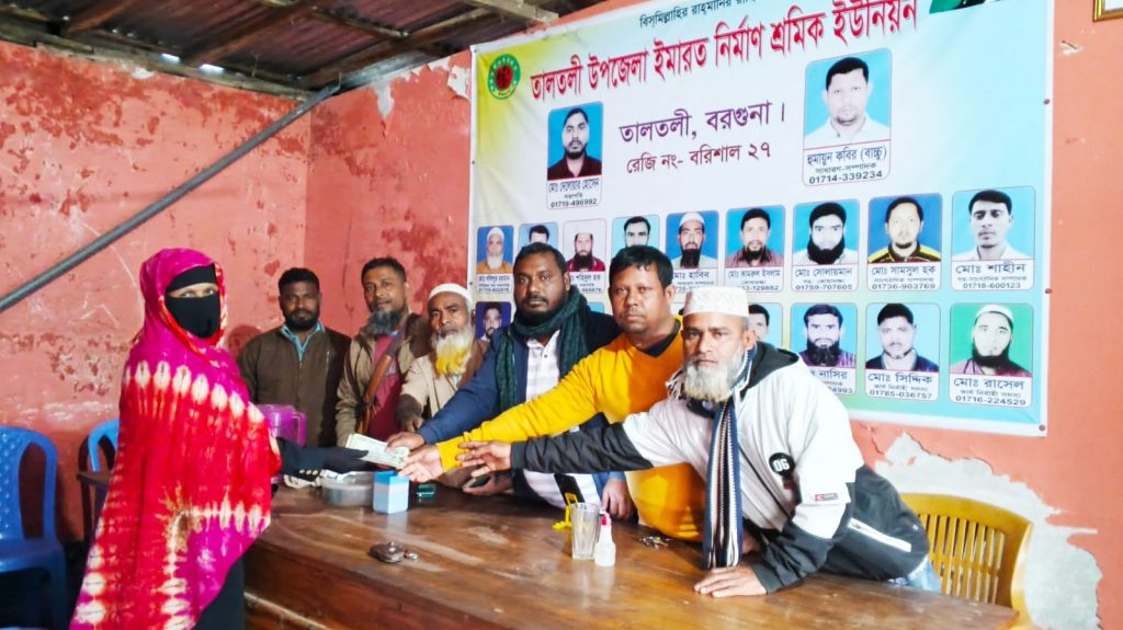 এ সময় উপস্থিত ছিলেন ইমারত শ্রমিক ইউনিয়নের সভাপতি মোঃ দেলোয়ার হোসেন, সাধারণ সম্পাদক হুমায়ুন কবির বাচ্চু, সহ-সভাপতি মো. খলিলুর রহমান, সহ-সাধারণ সম্পাদক মোঃ কাওসার, কোষাধ্যক্ষ মোঃ কামরুল ইসলাম এবং প্রচার সম্পাদক আবু কালাম।