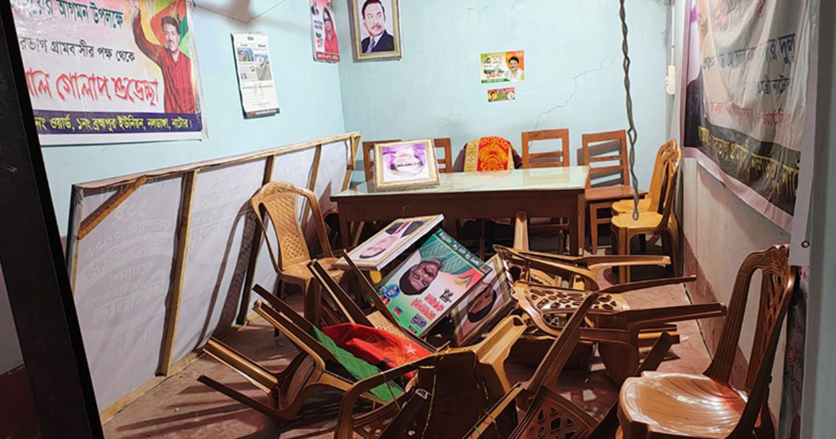 নাটোর প্রতিনিধি:: নাটোরের নলডাঙ্গা উপজেলায় কার্যক্রম নিষিদ্ধ আওয়ামী লীগের স্থানীয় নেতাকর্মীদের বিরুদ্ধে বিএনপির দলীয় কার্যালয়ে ভাঙচুরের অভিযোগ উঠেছে।সোমবার সন্ধ্যার পর উপজেলার ছাতারভাগ এলাকায় এ ঘটনা ঘটে।