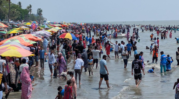 সরেজমিনে সোমবার (২৩ মার্চ) দেখা যায়, দেশের বিভিন্ন প্রান্ত থেকে আসা ভ্রমণপিপাসু মানুষে মুখর হয়ে উঠেছে সৈকত এলাকা।সমুদ্রের ঢেউয়ের সঙ্গে তাল মিলিয়ে আনন্দ-উচ্ছ্বাসে মেতে উঠেছেন নানা বয়সী পর্যটক। কেউ পরিবার নিয়ে, কেউ বন্ধুদের সঙ্গে আবার কেউ প্রিয়জনকে পাশে নিয়ে উপভোগ করছেন ঈদের আনন্দ।