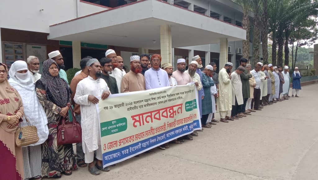 বাংলাদেশ মাদ্রাসা শিক্ষা বোর্ড কর্তৃক স্বীকৃতিপ্রাপ্ত অনুদানভুক্ত ও অনুদানবিহীন সকল স্বতন্ত্র ইবতেদায়ী মাদ্রাসা গত ২৮ জানুয়ারী ২০২৫ইং তারিখে অন্তর্বর্তীকালীন সরকারের নির্দেশে শিক্ষা মন্ত্রনালয় কর্তৃক প্রাথমিক বিদ্যালয়ের ন্যায় জাতীয়করণ ঘোষনা বাস্তবায়নের দাবীতে মানববন্ধন ও কুড়িগ্রাম জেলা প্রশাসকের মাধ্যমে “মাননীয় প্রধানমন্ত্রী ও শিক্ষামন্ত্রী বরাবর স্মারকলিপি প্রদান কর্মসূচি পালন করা হয়েছে।