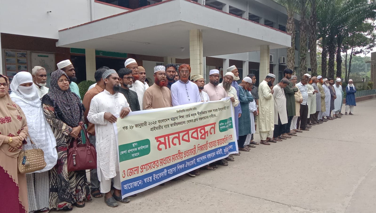 বুধবার (১৫ এপ্রিল) কুড়িগ্রাম প্রশাসক কার্যালয়ের সামনে স্বতন্ত্র ইবতেদায়ী মাদ্রাসা শিক্ষক ঐক্যজোট, আন্দোলন বাস্তবায়ন কমিটি, কুড়িগ্রাম জেলার আয়োজনে ও স্বতন্ত্র ইবতেদায়ী মাদরাসা শিক্ষক ঐক্যজোটের (আন্দোলন বাস্তবায়ন কমিটি) কুড়িগ্রাম জেলা শাখার সভাপতি মোঃ আব্দুর রশিদ এর সভাপতিত্বে এ মানববন্ধন অনুষ্ঠিত হয়।