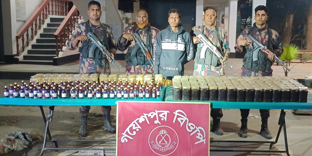 এসময় মুকুল মিয়া নামের একজনকে আটক করে তার হেফাজত হতে উদ্ধারপূর্বক জব্দ করা হয় ৯২ বোতল ভারতীয় উইন সেরেক্স সিরাপ, ১৩০ কেজি খেজুরের গুড় ও ৫টি প্লাস্টিকের ক্যারেট। অভিযানে নেতৃত্বে দেন হাবিলদার বিল্লাল হোসেন।