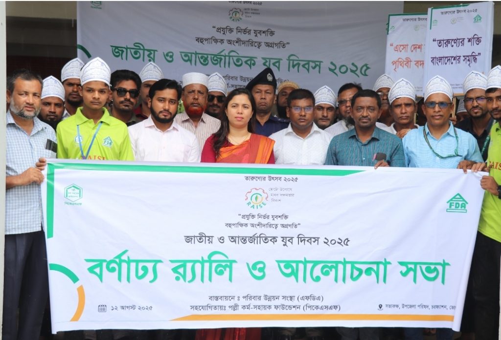 নুরুল্লাহ ভূইয়া, চরফ্যাসন, ভোলা:”প্রযুক্তি নির্ভর যুবশক্তি, বহু পাক্ষিক অংশীদারত্বে অগ্রগতি”এই প্রতিপাদ্যকে সামনে রেখে জাতীয় ও আন্তর্জাতিক যুব দিবস-২০২৫ উদযাপন করা হয়েছে। মঙ্গলবার ( ১২ আগষ্ট) সকাল ১১টায় দিবসটি উপলক্ষে পরিবার উন্নয়ন সংস্থা (এফডিএ) কর্তৃক বাস্তবায়নাধীন পল্লী কর্ম-সহায়ক ফাউন্ডেশন (পিকেএসএফ) এর আর্থিক ও কারিগরি সহযোগিতায় রেইজ প্রকল্প কর্তৃক একটি বর্ণাঢ্য র‍্যালি ও আলোচনা সভার আয়োজন করা হয়। র‌্যালিটি উপজলো থেকে শুরু হয়ে চরফ্যাশন এর গুরুত্বর্পূন সড়ক প্রদক্ষিন করে উপজেলা চত্বরে এসে শেষ হয়। বর্ণাঢ্য র‍্যালিটি শেষে উপজেলা হল রুমে জাতীয় ও আর্ন্তজাতিক যুব দিবস-২০২৫ উপলক্ষে ‘ভবিষ্যৎ বাংলাদেশ বিনির্মানে যুব সমাজের ভবিষ্যৎ করনীয়’ সর্ম্পকে বিস্তারিত আলোচনা করা হয়। বর্ণাঢ্য র‍্যালি ও অলোচনা সভায় প্রধান অতিথি ছিলেন ইউএনও রাসনা শারমিন মিথি । বিশেষ অতিথি ছিলেন, সহকারী কমিশনার( ভূমি) এমাদুল ইসলাম, উপজেলা সিনিয়র মৎস্য কর্মকর্তা জয়ন্ত কুমার অপু, উপজেলা যুব উন্নয়ন কর্মকর্তা টিএসএম ফিদা হাসান, পরিবার উন্নয়ন সংস্থা (এফডিএ) এর রেইজ প্রকল্পের ফোকাল পার্সন শংকর চন্দ্রদেবনাথ সহ এফডিএ প্রধান কার্যালয়ের কর্মকর্তাবৃন্দ ও রেইজ টীমের কর্মকর্তাবৃন্দ।