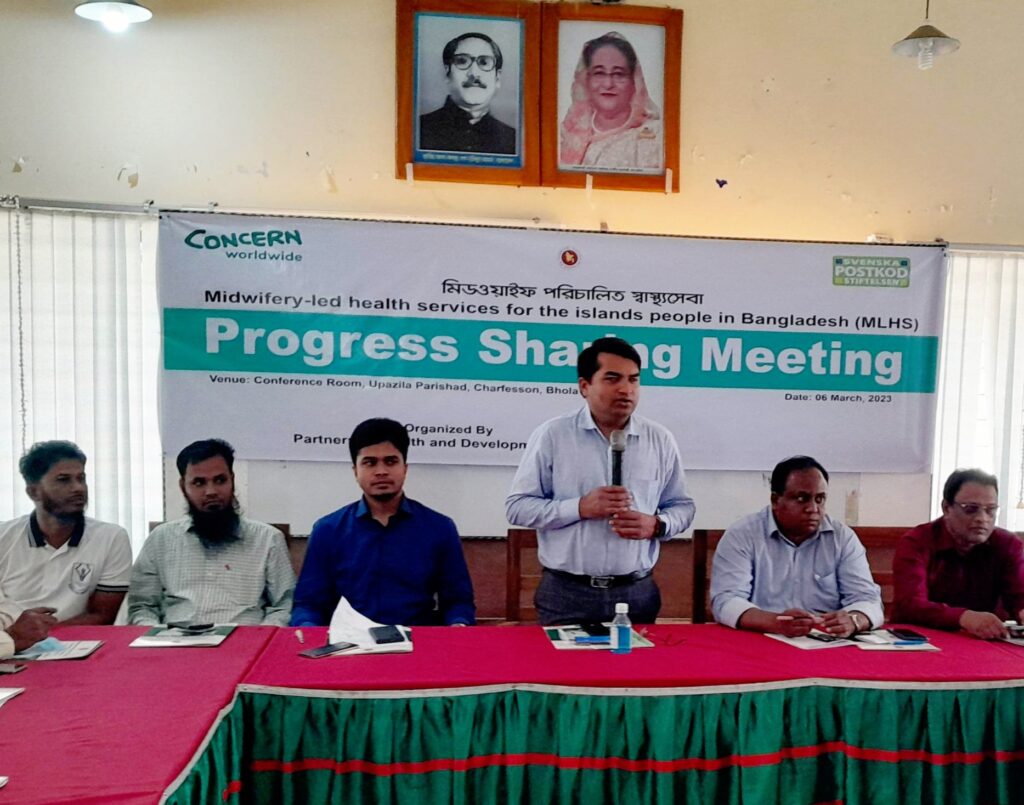 The Swedish Postcode Foundation এর অর্থায়নে এবং Concern Worldwide এর সহযোহিতায় পার্টনার্স ইন হেলথ্ এন্ড ডেভেলপমেন্ট (পিএইচডি) এর বাস্তবায়নে Midwifery-led health services for the islands people in Bangladesh (MLHS) বা ”মিডওয়াইফ পরিচালিত স্বাস্থ্যসেবা” নামক শীর্ষক প্রকল্পের মাধ্যমে মিডওয়াইফ ও মেডিকেল এসিস্ট্যান্ট নিয়োগ প্রদান করা হয়েছে। এ প্রকল্পটি সরকারী, বেসরকারী ও স্থানীয় সরকারের তত্বাবধানে ত্রিপক্ষীয় অংশীদারত্বের ভিত্তিতে ভোলা জেলার চরফ্যাসন উপজেলার ২টি ও মনপুরা উপজেলার ২টি ইউনিয়নে বাস্তবায়ন হচ্ছে।