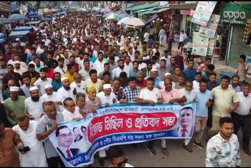 চরফ্যাসনে বিএনপির মিছিল ও প্রতিবাদ সভা
