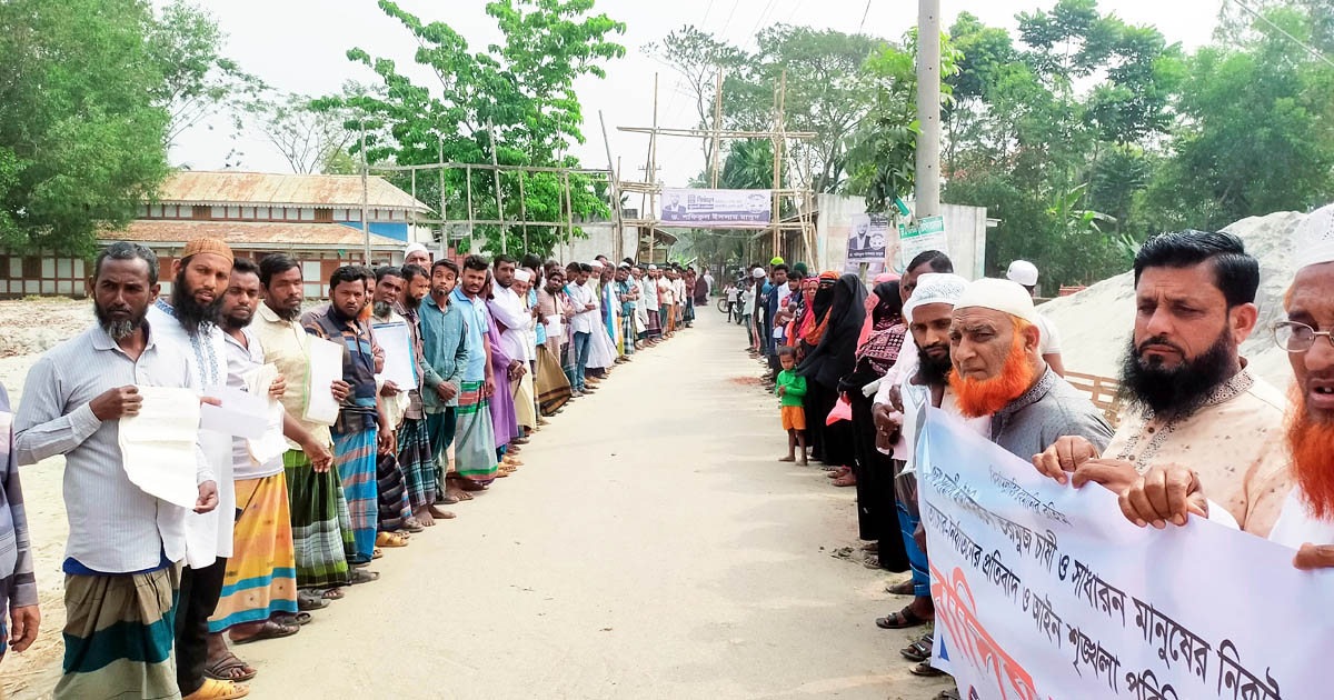 চাঁদাবাজির অভিযোগে বিএনপি নেতার বিরুদ্ধে স্থানীয়দের মানববন্ধন
