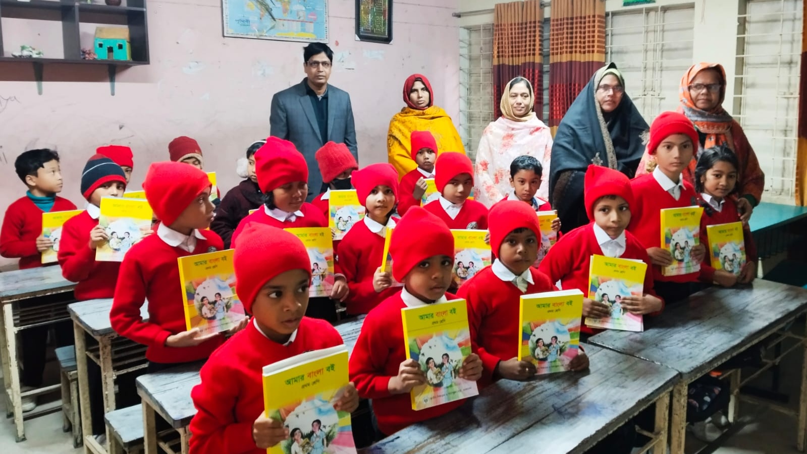চাঁপাইনবাবগঞ্জ মডেল স্কুলে আনুষ্ঠানিকতা ছাড়াই শিক্ষার্থীদের হাতে নতুন বই