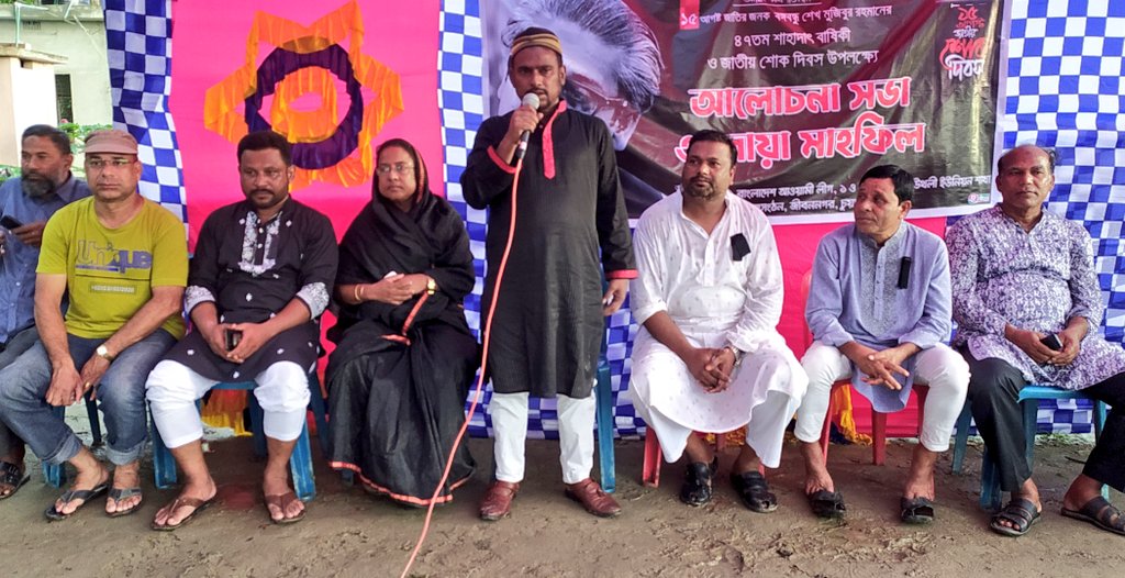 এম.এ.আর.নয়ন: স্বাধীনতার মহান স্থপতি বঙ্গবন্ধু শেখ মুজিবুর রহমানের ৪৭তম শাহাদৎবার্ষিকী ও জাতীয় শোক দিবস উপলক্ষ্যে চুয়াডাঙ্গার জীবননগর উপজেলার উথলীতে আলোচনা সভা ও দোয়া মাহফিল অনুষ্ঠিত হয়েছে। উথলী ১ ও ২নং ওয়ার্ড আওয়ামী লীগের আয়োজনে সোমবার (১৫ই আগস্ট) বিকালে উথলী বাসস্ট্যান্ডে এই আলোচনা সভা ও দোয়া মাহফিল অনুষ্ঠিত হয়। ১নং ওয়ার্ড আওয়ামী লীগের সভাপতি লুৎফুর রহমান লুতুর সভাপতিত্বে অনুষ্ঠানে প্রধান অতিথি হিসেবে উপস্থিত থেকে বক্তব্য রাখেন উপজেলা পরিষদের চেয়ারম্যান হাজী হাফিজুর রহমান হাফিজ। উথলী ইউনিয়ন আওয়ামী লীগের আইন বিষয়ক সম্পাদক সাংবাদিক সালাউদ্দীন কাজলের পরিচালনায় অনুষ্ঠানে বিশেষ অতিথি হিসেবে বক্তব্য রাখেন উপজেলা পরিষদের মহিলা ভাইস চেয়ারম্যান আয়েশা সুলতানা লাকি, ইউনিয়ন আওয়ামী লীগের সভাপতি আব্দুল হান্নান, সাধারণ সম্পাদক মোবারক সোহেল আহাম্মদ প্রদীপ, সাংগঠনিক সম্পাদক মিজানুর রহমান মিল্টু,