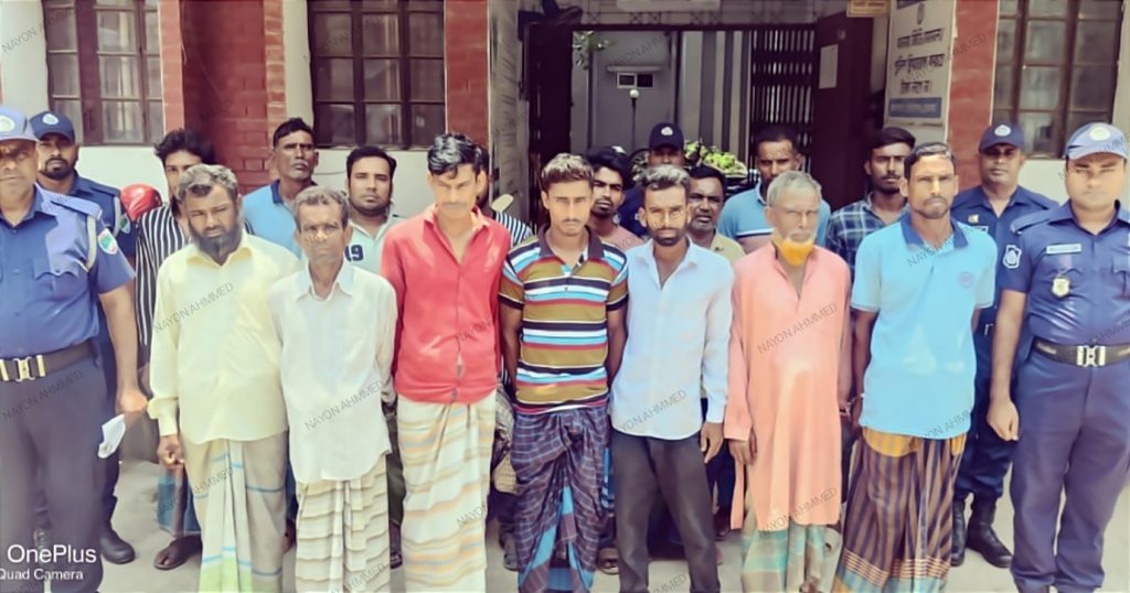 গ্রেফতারকৃতরা হলেন- মনোহরপুর গ্রামের মৃত শুকুর আলীর ছেলে আব্দুল হামিদ (৪০), সেনেরহুদা গ্রামের মৃত মহাসিন আলীর ছেলে কাশেম উদ্দিন ওরফে কসিম (৫৫), জসিম উদ্দিন ওরফে জসি (৬১), কাশেম উদ্দিনের ছেলে সজল (২০), মৃত মমিন উদ্দিনের ছেলে হিরোক (৩০), মগবুলের ছেলে বাবুল (২৫), হাউস আলীর ছেলে হাসান আলী (২১), মহাসিন আলী বিশ্বাসের ছেলে তাহাজ উদ্দিন ওরফে তাজুক (৪৯), তাহাজ উদ্দিনের ছেলে শাহিন হোসেন (২১), বেনীপুর গ্রামের মৃত ফকির চাঁদ মালিতার ছেলে লাল মিয়া ওরফে হারান (৬৫), লাল মিয়ার ছেলে সেলিম হোসেন (৩২), গয়েশপুর গ্রামের শরিফ উদ্দিনের ছেলে চন্দন (২৬), জাহিদুল ইসলামের ছেলে হামিদুল ইসলাম (৩০), মৃত মল্লিক মণ্ডলের ছেলে শরীফ (৪৫) এবং রুমাত আলী (৪০)।