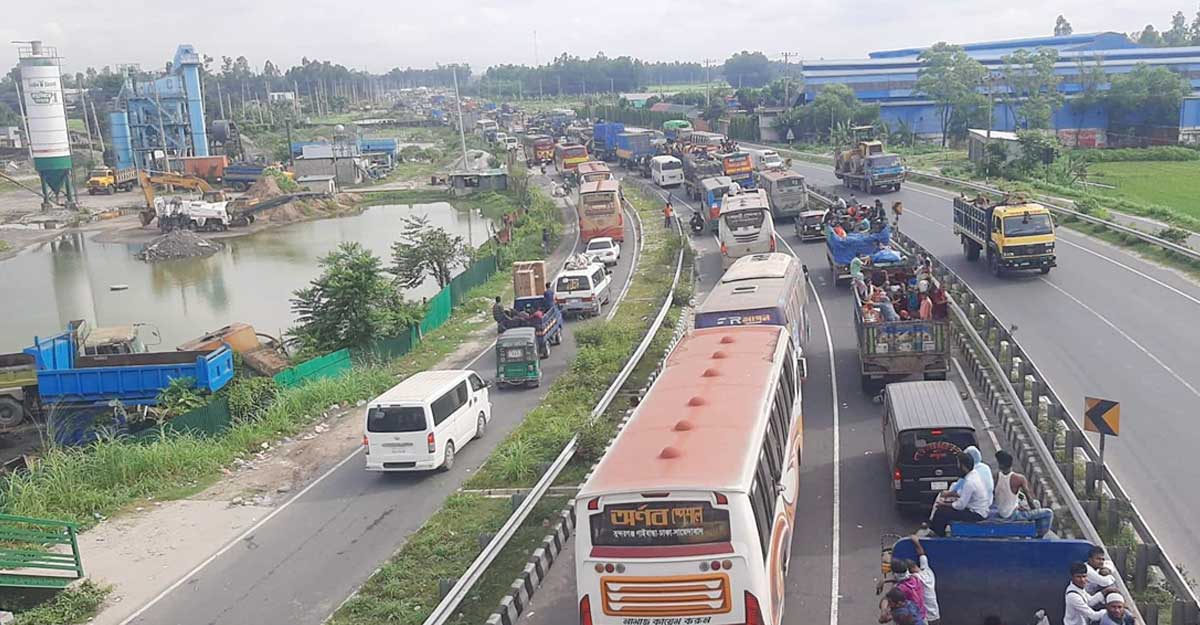 এ ছাড়া বঙ্গবন্ধু সেতুপূর্ব হতে সেতু পশ্চিম গোল চত্বর পর্যন্ত গাড়ি থেমে থেমে চলাচল করছে। ফলে ভোগান্তিতে পড়েছেন এই মহাসড়ক ব্যবহারকারী যাত্রী ও চালকরা। ঈদে বাড়ি ফিরতে তাদের দুই থেকে তিন গুন বেশি সময় লাগছে।