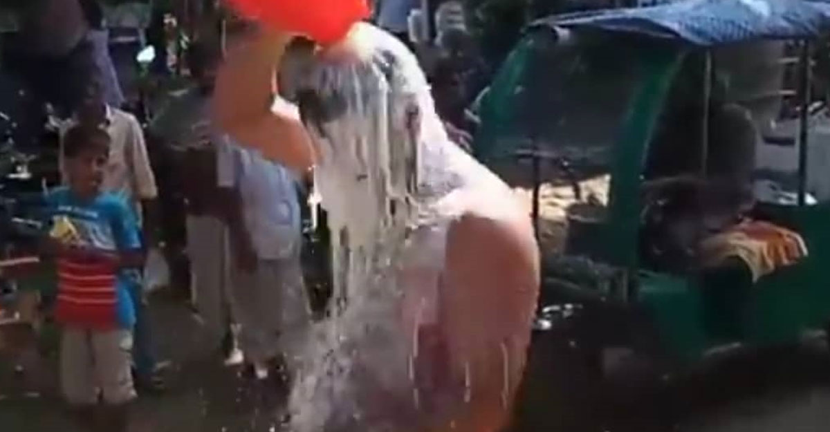 এ সময় সানোয়ার হোসেনের ব্যবহৃত মোটরসাইকেলটিও দুধ দিয়ে ধোয়া হয়।