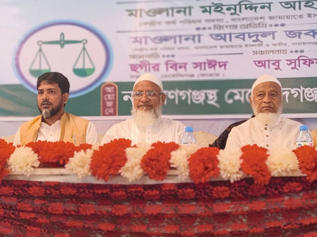 সভায় প্রধান বক্তা ছিলেন জামায়াতের কেন্দ্রীয় কর্মপরিষদ সদস্য ও নারায়ণগঞ্জ-৫ আসনে জাতীয় সংসদ সদস্য প্রার্থী মাওলানা মঈনুদ্দিন আহমাদ।