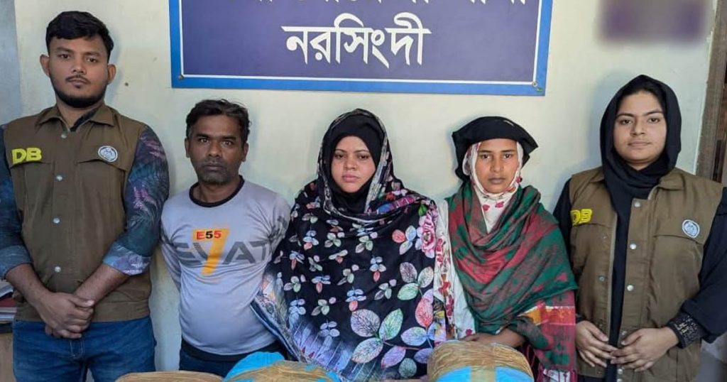 সোমবার সকাল ৬টা ২০ মিনিটে জেলা গোয়েন্দা শাখা নরসিংদীর এসআই (নি.) মোবারক হোসেন সঙ্গীয় অফিসার ফোর্সসহ চেকপোস্ট পরিচালনা করেন। এ সময় নরসিংদী থেকে রায়পুরাগামী আঞ্চলিক সড়কের হাসনাবাদ বাজার এলাকার বটতলা জননী মেডিকেলের সামনে পাকা রাস্তার ওপর সন্দেহভাজন একটি সিএনজি তল্লাশি করে বিপুল পরিমাণ গাঁজা উদ্ধার করা হয়।গ্রেপ্তারকৃতরা হলেন, সামির মিয়া (৪৩), সালমা বেগম (৪০), রিমা বেগম।