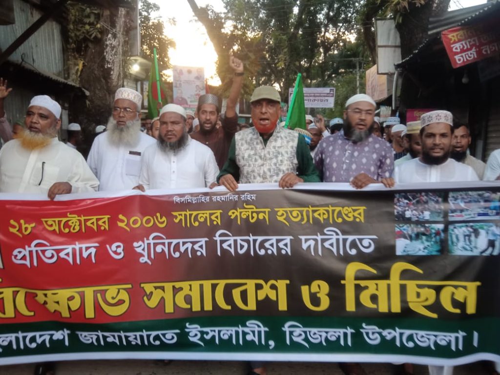 পল্টন ট্রাজেডি দিবসে হিজলায় জামায়াতের বিক্ষোভ মিছিল ও সমাবেশ