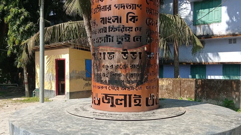 পিরোজপুর প্রতিনিধি:: পিরোজপুরে জুলাই-আগস্ট আন্দোলনে নিহত শহীদদের স্মরণে নির্মিত স্মৃতিস্তম্ভে আগুন দিয়েছে অজ্ঞাত দুর্বৃত্তরা।শুক্রবার (১৪ নভেম্বর) গভীর রাতে জেলা কেন্দ্রীয় শহীদ মিনারের পাশে নির্মিত জুলাই স্মৃতিস্তম্ভে এ ঘটনা ঘটে।শনিবার (১৫ নভেম্বর) সকালে স্থানীয়রা স্মৃতিস্তম্ভের নিচের অংশে আগুন দেওয়ার চিহ্ন ও কালো দাগ দেখতে পান।এদিকে সামাজিক যোগাযোগমাধ্যমে আগুন দেওয়ার একটি ভিডিও ভাইরাল হয়।