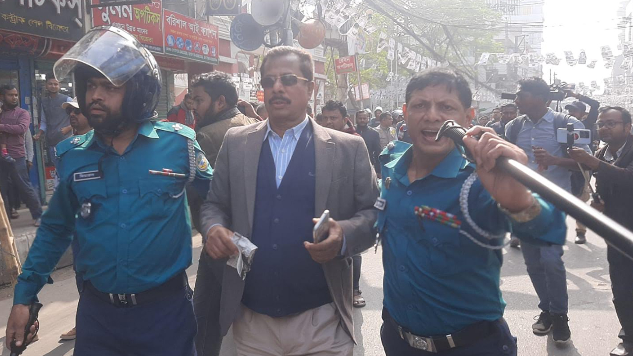 এসময় ধাওয়া করে পুলিশ দক্ষিণ জেলা বিএনপির আহ্বায়ক আবুল হোসেন খান, আমিনুর রহমান টুটু, রিয়াজ হোসেন, সুজন আকন, সাইফুল ইসলাম, আল আমিন, হৃয়দ হোসেন তামিমকে আটক করে।