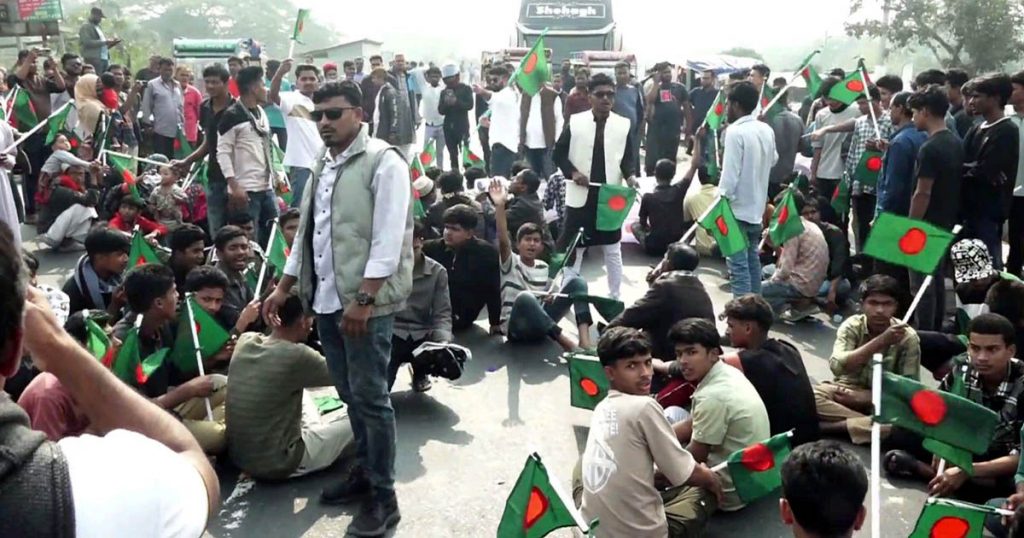 বরিশাল ব্যুরো :: জুলাই গণঅভ্যুত্থানের অকুতোভয় যোদ্ধা ও ‘ইনকিলাব মঞ্চ’র মুখপাত্র শরীফ ওসমান হাদি হত্যার হত্যাকারীদের বিচারের দাবিতে বরিশাল-ঢাকা মহাসড়ক অবরোধ করে বিক্ষোভ করেছে ছাত্র-জনতা। রোববার সকালে ঢঢাকা-বরিশাল মহাসড়কের রহমতপুর বাসস্ট্যান্ডে মহাসড়ক অবরোধ করে বরিশাল জেলা ছাত্রদলে সাবেক সহ সভাপতি সবুজ আকনের নেতৃত্বে বিক্ষোভ মিছিল ও অবস্থান কর্মসূচি পালন করা হয়।