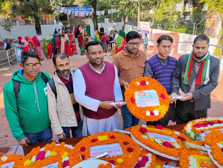 স্টাফ রিপোর্টার: শহীদ স্মৃতি স্তম্ভে শ্রদ্ধাঞ্জলি নিবেদনসহ নানা আয়োজনের মধ্যদিয়ে মহান বিজয় দিবস পালন করছে বরিশাল জেলা সাংবাদিক ইউনিয়ন। আজ সোমবার (১৬ ডিসেম্বর) সকালে বরিশাল জেলা প্রশাসকের কার্যালয় সামনে স্থাপিত শহীদ মুক্তিযাদ্ধা স্মৃতি ফলকে ফুলেল শ্রদ্ধা নিবেদন করেন