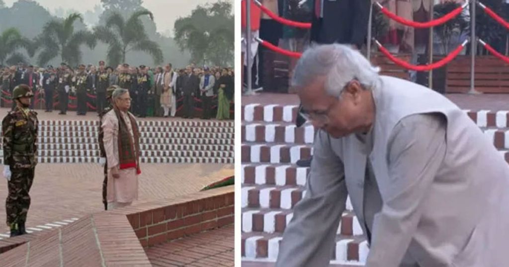 নিজস্ব প্রতিবেদক :: মহান বিজয় দিবস উপলক্ষে সাভারের জাতীয় স্মৃতিসৌধে বীর শহীদদের প্রতি গভীর শ্রদ্ধা নিবেদন করেছেন রাষ্ট্রপতি মো. সাহাবুদ্দিন ও অন্তর্বর্তীকালীন সরকারের প্রধান উপদেষ্টা ড. মুহাম্মদ ইউনূস।মঙ্গলবার সকালে তারা স্মৃতিসৌধের মূল বেদিতে পুষ্পস্তবক অর্পণ করেন।