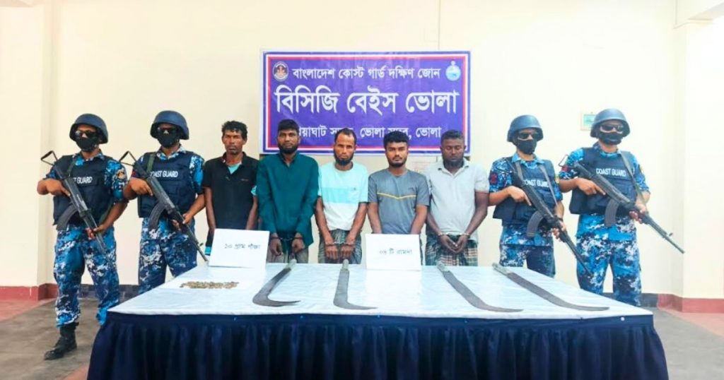 ভোলায় কোস্টগার্ডের অভিযান: দেশীয় অস্ত্রসহ ৫ জলদস্যু আটক