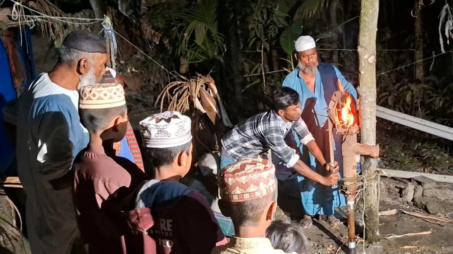 তখন আমরা দিয়াশলাই দিয়ে আগুন দিলে টিউবওয়েলের মুখে আগুন জ্বলে ওঠে।