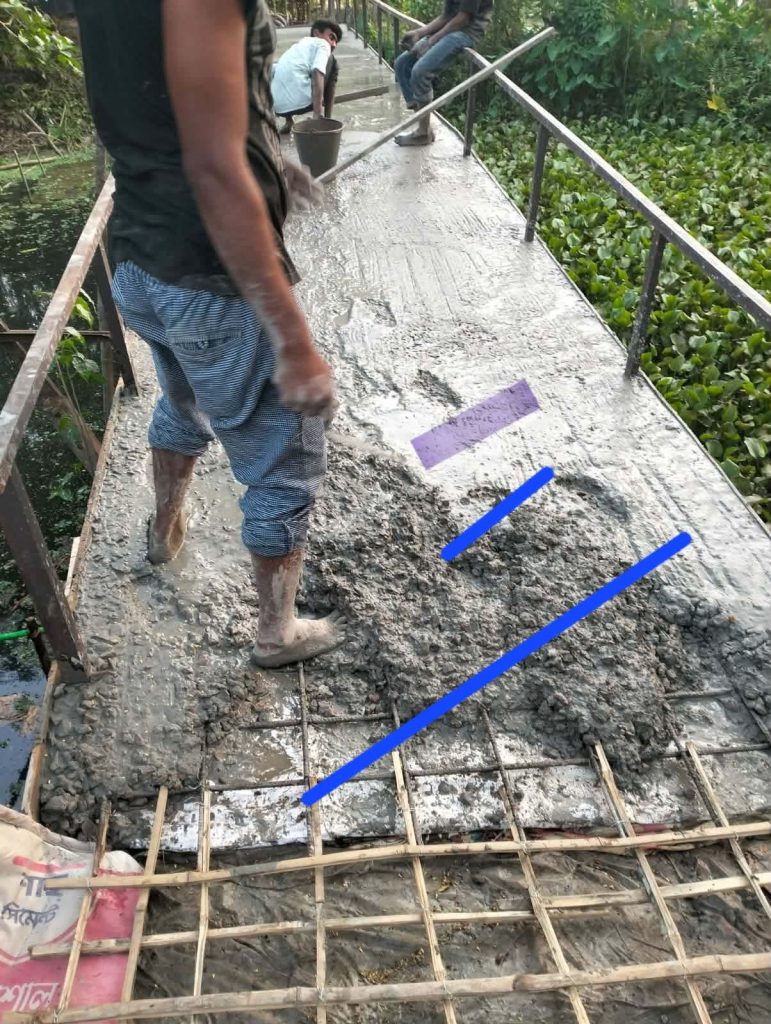 একাধিক প্রত্যক্ষদর্শী জানান, ঢালাইয়ের সময় শ্রমিকরা লোহার রডের পরিবর্তে বাঁশ বসিয়ে কাজ সম্পন্ন করেন। পরে বিষয়টি স্থানীয়দের নজরে এলে ক্ষোভ ছড়িয়ে পড়ে।