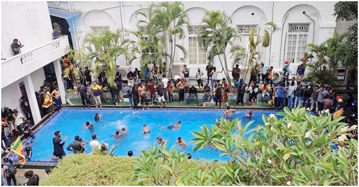 সামাজিক যোগাযোগমাধ্যমে ছড়িয়ে পড়া ভিডিওতে দেখা যাচ্ছে, শত শত বিক্ষোভকারী প্রেসিডেন্ট গোতাবায়ার বাসভবনে ঢুকে পড়েছেন। তারা বাড়ির ছাদে, বাগানে শ্রীলঙ্কার পতাকা টাঙিয়ে দিয়েছেন।একটি ভিডিওতে দেখা যায়, বিক্ষোভকারীরা প্রেসিডেন্টের সুইমিং পুলে নেমে সাঁতার কাটছেন। এ সময় পুলের পাশে দাঁড়িয়ে অনেক বিক্ষোভকারীকে লঙ্কান পতাকা উড়াতে দেখা যায়। আর এই ভিডিও মুহূর্তের মধ্যে সামাজিক যোগাযোগমাধ্যমে ভাইরাল হয়ে ছড়িয়েছে।