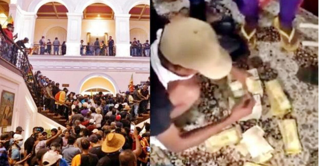 সামাজিক যোগাযোগমাধ্যম টুইটারে ছড়িয়ে পড়া ও ভাইরাল একটি ভিডিওতে দেখা যাচ্ছে, প্রেসিডেন্টের বাসভবনের একটি ঘরের মেঝেতে কয়েকটি রুপির বান্ডিল রাখা। কয়েকজন ব্যক্তি সেই বান্ডিল খুলে রুপি গুনছেন।