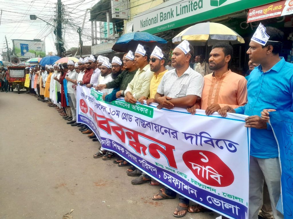 ১০ম গ্রেড বাস্তবায়নের দাবিতে চরফ্যাশনে শিক্ষকদের মানববন্ধন