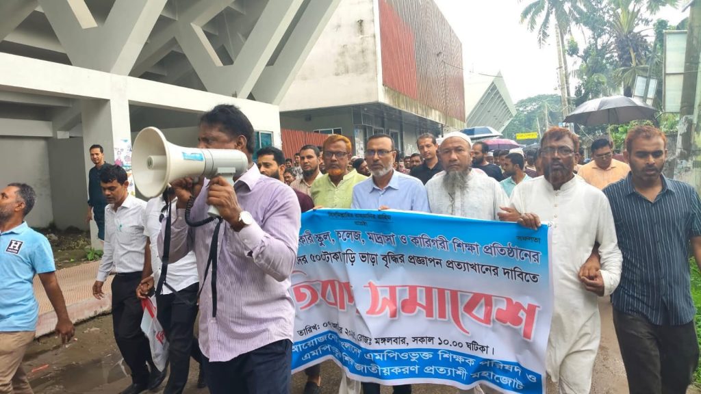 প্রতিবাদ সভায় বক্তারা বলেন, সরকার ৫০০ টাকা বাড়ি ভাড়া বৃদ্ধি করে শিক্ষকদের সাথে তালবাহানা না করে অতি দ্রুত শিক্ষকদের দাবি অনুযায়ী কাঙ্খিত বেতন এবং বাড়ি ভাড়া বৃদ্ধি করতে হবে, অন্যথায় সারাদেশে শিক্ষকদের নিয়ে লাগাতার আন্দোলন করা হবে।