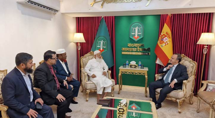 আপডেট নিউজ ডেস্ক:: বাংলাদেশে নিযুক্ত স্পেনের রাষ্ট্রদূত গাব্রিয়েল সিস্তিয়াগা ওচোয়া দে চিনচেক্র বাংলাদেশ জামায়াতে ইসলামির আমির ডা. শফিকুর রহমানের সঙ্গে সাক্ষাৎ করেছেন।রোববার (২৮ সেপ্টেম্বর) সকাল ৯টায় জামায়াত আমিরের বসুন্ধরা কার্যালয়ে এ সৌজন্য সাক্ষাৎ অনুষ্ঠিত হয়।সাক্ষাতের শুরুতেই স্পেনের রাষ্ট্রদূত জামায়াত আমিরের স্বাস্থ্যের খোঁজ-খবর নেন এবং পরিপূর্ণ সুস্থতা কামনা করেন।