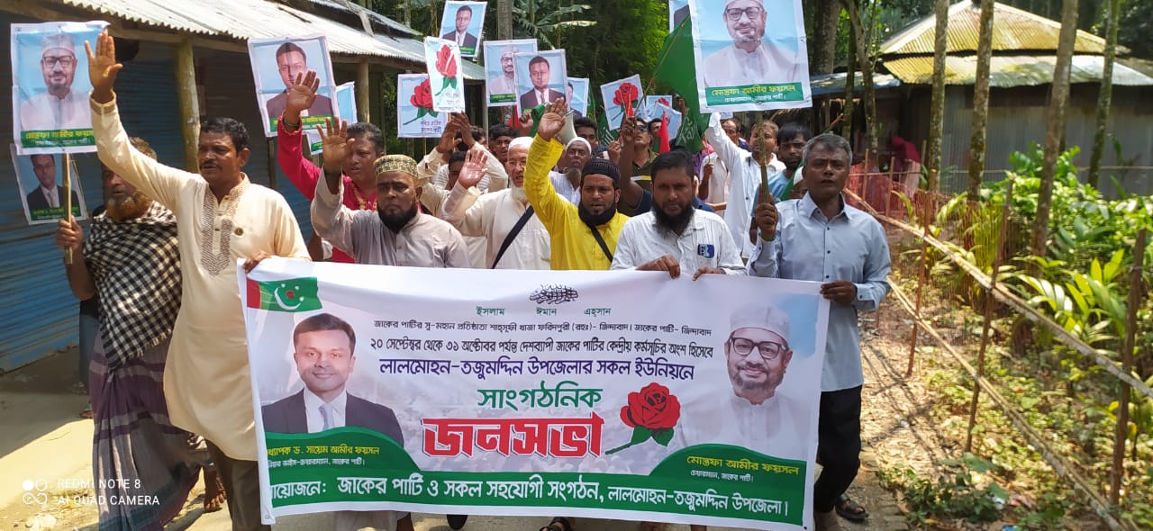 নিজস্ব প্রতিবেদক।। সারা দেশের ইউনিয়ন জনসভার অংশ হিসেবে ভোলার লালমোহন সদর ইউনিয়নে অনুষ্ঠিত হয়েছে জাকের পার্টির নির্বাচনী জনসভা ও সমাবেশ, যেখানে পার্টির ২৯ নভেম্বর সরোওয়ার্দী উদ্যানে নির্ধারিত মহাসমাবেশে অংশগ্রহণের দাওয়াত জানানো হয়। অনুষ্ঠানের প্রধান অতিথি ছিলেন জাকের পার্টির স্থায়ী কমিটির সদস্য, ওলামা ফ্রন্টের কেন্দ্রীয় সাধারণ সম্পাদক এবং নব নির্বাচিত ভোলা জেলা সভাপতি হাফেজ মাওঃ মুফতি মাসুম বিল্লাহ।