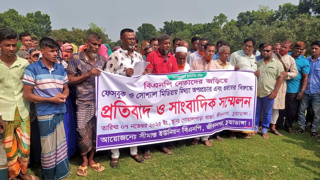 জীবননগর উপজেলা বিএনপির সিনিয়র যুগ্ম সাধারণ সম্পাদক মঈন উদ্দিন ময়েনসহ বিএনপি নেতাদের জড়িয়ে সোশ্যাল মিডিয়ায় অপপ্রচার ও গুজবের প্রতিবাদে সংবাদ সম্মেলন অনুষ্ঠিত হয়েছে। শুক্রবার (৭ই নভেম্বর) সকাল ১১টার দিকে উপজেলার সীমান্ত ইউনিয়ন বিএনপির আয়োজনে গোয়ালপাড়া বাজারে এ সংবাদ সম্মেলন অনুষ্ঠিত হয়।