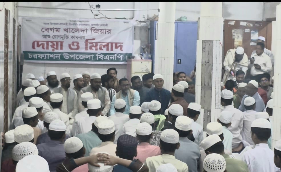 বিএনপি চেয়ারপারসন ও সাবেক প্রধানমন্ত্রী বেগম খালেদা জিয়ার রোগমুক্তি কামনায় চরফ্যাশনে কোরআন খতম, দোয়া মোনাজাত অনুষ্ঠিত হয়েছে।