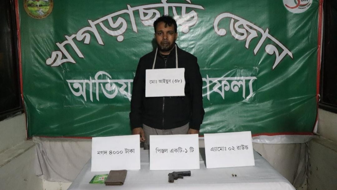 আটকের পর তল্লাশি চালিয়ে তার কাছ থেকে একটি পিস্তল, একটি ম্যাগাজিন, দুই রাউন্ড গুলি এবং নগদ ৪ হাজার ২০ টাকা উদ্ধার করা হয়।