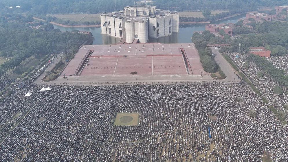 গতকাল মঙ্গলবার সকালে শেষ নিশ্বাস ত্যাগ করা খালেদা জিয়াকে বুধবার বিকালে দাফন করা হয়। এরআগে মানিক মিয়া অ্যাভিনিউতে বেলা ৩টা বেজে ৩ মিনিটে খালেদা জিয়ার জানাজা শুরু হয়। জানাজায় অংশ নিতে মানুষের ঢল নামে। বেলা ৩টা বেজে ৫ মিনিটে জানাজা সম্পন্ন হয়।