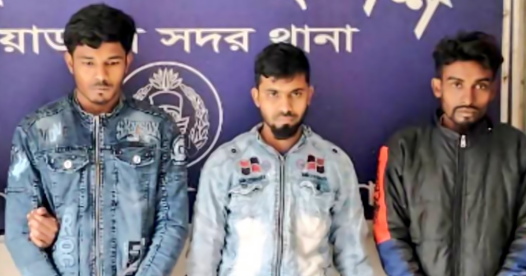 আটক তিন যুবকক হলেন- উথলী গ্রামের আজগার আলীর ছেলে রাজু হোসেন (২৫), রায়হান আলীর ছেলে রিওন মিয়া (২৬) এবং দর্শনা থানার রাঙ্গিয়ারপোতা গ্রামের শহিদুল ইসলামের ছেলে শাওন (২৭)।